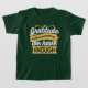The t-shirt feels and looks great quality, a good thick cotton. It will be a little big for my son, but that means he will be able to wear it and not out grow it too soon. The print was as described on the order when personalised. True size, shape and colour T-shirt- thanks.