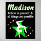 This awesome and outstanding Gymnast will be inspired with the beautiful green personalised Gymnastics poster with the motivational quote; All things are possible to those who believe. This amazing Gymnast is going for gold and is ready to become a Gymnastics Champion. This beautiful Gymnastics Poster showing an elegant Gymnastics pose is perfect for Birthdays, Holidays, or any occasion. Your outstanding Gymnast will be inspired with this uplifting Gymnastics Poster hanging on her bedroom wall.