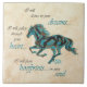 Brighten Your Home with this Unique"One of a Kind" Inspirational Horse Decorative Tile! It Features a Galloping Turquoise Horse Silhouette in Turquoise, Black & Gold on a Light Brown Wood Background and the Inspiring Quote...