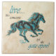 Brighten Your Home with this Unique"One of a Kind" Inspirational Horse Ceramic Tile! It Features a Galloping Horse Silhouette in Turquoise, Black & Gold on a Light Brown Wood Background and the Inspiring Quote..."Live Like Someone Left The Gate Open"!