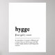 Let's bring more hygge into our daily life with this cool and inspirational black and white dictionary poster. Hygge is regarded as a characteristic of the Danish culture. So let's all be more Danish!