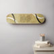 A rather apropos skateboard with the quote, "The journey is the same. Only the path taken is different", rendered in elegant lettering on a faux stained burlap background.