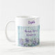 Lovely mug with blue and purple palette and floral design. ALWAYS CHOOSE KINDNESS is written on the faux wood fence in decorative script lettering above the flowers. Personalise with your/recipient name!