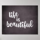 Inspirational Life is Beautiful Poster Prints with vintage chalkboard inspired background, white modern typography script. See more at Motivate Me. Link below: