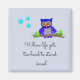 A great quote to practice everyday... when life gets too hard to stand, kneel! Blue background with a whimsical owl on a branch and little blue stars in the sky.