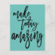 Send someone motivational words with the inspiring quote Make Today Amazing in an artsy script in black on a teal background.
