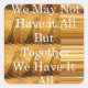 This artwork prominently features the phrase "We may not have it all but together we have it all," conveying a powerful message about the strength found in togetherness. The giraffe motif enhances the theme of connection and completeness.