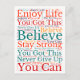 Send someone encouraging positive vibes with this pattern of inspirational motivational phrases such as Enjoy Life, you Got This, You Can, Believe, Stay Strong, Never Give Up, in red, orange, teal, yellow and purple.