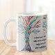 This decorative coffee mug features a rainbow-coloured mosaic tree and an inspiring quote.