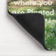 Inspirational saying. Delicate antique fountain with white doves. Bloom where you are planted