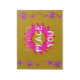 Purple and Green (Border): The floral border features purple flowers and green leaves, creating a visually appealing contrast against the yellow background.