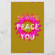 This artwork prominently features the phrase "Peace Be With You" displayed in the centre. The text is stylised and surrounded by a decorative floral border, creating a balanced and symmetrical composition that draws the eye to the uplifting message. A solid colour background provides a clear contrast, enhancing the overall design.