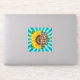 Pretty hand drawn yellow sunflower with a magical background. Inspirational quote colourful art. Retro colours.