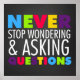 Chalkboard look background poster great for classrooms and teachers reads Never Stop Wondering & Asking Questions.