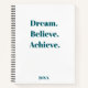 Stay motivated every day with this bold and inspiring notebook cover featuring the powerful words "Dream. Believe. Achieve." The clean typography and editable year make it ideal for journals, planners, or academic notebooks. Perfect for students, professionals, and creatives who value positivity, ambition, and daily inspiration. Works beautifully with different background colours for a versatile and timeless design. The editable year at the bottom adds a personal touch, making it perfect for journals, planners, or academic notebooks. Ideal for anyone seeking daily positivity and stylish design.