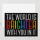The world is brighter with you in it. Be a positive force on the planet with this happiness motivational quote for a friend with depression. Beautiful LGBTQ gay pride inclusivity design. Share this motivational quotation that encourages and lifts spirits with its affirmations. Perfect for a psychologist with depressed mental health patients or someone who has suicidal thoughts.