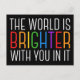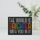 The world is brighter with you in it. Be a positive force on the planet with this happiness motivational quote for a friend with depression. Beautiful LGBTQ gay pride inclusivity postcard. Share this motivational quotation that encourages and lifts spirits with its affirmations. Perfect for a psychologist with depressed mental health patients or someone who has suicidal thoughts.