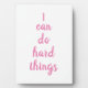 Inspirational Quote I Can Do Hard Things Pink Script Typography Fuji Plaque Standing Easel. Don't give up! Motivational saying for encouragement and growth mindset in bold pink hand lettering modern typography. Push yourself further with this unique motivating reminder to face your challenges. Perfect gift for her women girls and for back to school, entrepreneurs, athletes and anyone wanting to achieve dreams or goals. Step by Step Inspiration Series available exclusively on Zazzle at zazzle.com/store/KrisHarty, designed by international designer, Kris Harty. © 2022 Kris Harty Step By Step Inspiration