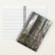 Spiral bound notebook with front and back covers that feature the photo image of a sunlit evergreen forest filled with tall, evergreen trees. Front cover includes the inspirational words of the Serenity Prayer printed in white, stylised text. Great for use as a journal or for keeping notes. Select your notebook style options.