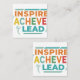 The t-shirt design features the bold phrase "Inspire Achieve Lead" in a modern, sans-serif font. The words are arranged vertically, with "Inspire" at the top, followed by "Achieve," and "Lead" at the bottom. The design is clean and minimalist, with a focus on the powerful message it conveys. The overall aesthetic is motivational and empowering, making it suitable for individuals who strive for excellence and leadership