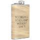 Add a touch of inspiration to your favourite drink with this hip flask, which features the uplifting words "To dream is to journey without limits" on golden waters!