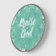 Here's a nice option... The inspirational, wall clock features, "Praise God" surrounded by a contemporary blue-gray (with hints of green) backdrop.