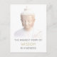 Postcard with a with an inspirational quote which says: The highest form of wisdom is kindness. Coupled with a tranquil and peaceful image of a statue of the Buddha all in white. Symbol of purity and enlightenment. The white background and simple fonts give this design a very minimalist look.