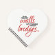 Add a touch of inspiration and motivation to penned thoughts with this heart-shaped journal, which features the words "fear creates walls but courage builds bridges" in elegant flowing script and sans serif lettering.