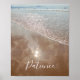 This poster shows a tranquil beach scene showing distant surfers waiting patiently for a wave.