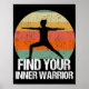 Find your inner warrior with this awesome yoga pose of Warrior 2 in front of a cool retro sunset. A cute inspirational yoga studio quote gift for a teacher.