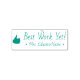 This motivating rubber stamp design features the message "Best Work Yet!" and a customised tutor's name. It also features a decorative thumbs-up icon. It could be used by a teacher, educator, instructor, or tutor when marking assignments, to acknowledge that the student has done well.