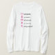 I love this shirt. I had written to the artist asking her if this picture was available on a shirt, and she wrote me back telling me where I could find the shirt. These shirts can be custom made to have a different saying. I loved this saying and went with it. The artist wrote me back later to tell me that she had seen my order go through. How's that for service? Pretty special. It's just as displayed. Perfect!