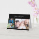 An easy to personalize 3 photo collage is set on a black background and has two flowing script fonts, one above the collage and the other inside the card.