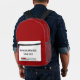 Humourous progress bar backpack featuring two lines of editable text.