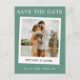 Modern Simple Retro Instant Camera Style Couple Photo Save The Date Photo Engagement Announcement Postcard - Eucalyptus Green