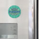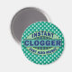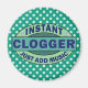 "Instant Clogger: Just Add Music." This cute fridge magnet design for clog dancers features an oval-shaped banner in shades of green, blue and white with music notes and stripes. The background is green-blue with white polka dots. It's a pretty magnet for the clog dancing fan. See variations and more original clogging designs at our ClogDance shop link!