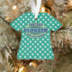 "Instant Clogger: Just Add Music." This cute shirt-shaped ornament design for clog dancers features an oval-shaped banner in shades of green, blue and white with music notes and stripes. The background is green-blue / sea green with white polka dots. It's a pretty, double-sided ornament for the clog dancing fan. See variations and more original clogging designs at our ClogDance shop link!