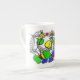 This mug is imprinted with a Bach Solos Suite for Cello. It was purchased as a thank you gift for a professional cellist friend who often performs this work. The cup is made of a high-grade ceramic and is fairly light. The walls are not too thick and it is a small to medium size. It's well finished, has a high-gloss glaze, and looks very elegant. The Bach Solo Suite score on the example I received was clear and had high contrast. Even though the staffs were small, the music was easy to read. The cellist who received this cup immediately knew what the music was as soon as she set eyes on it.