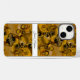 A macro flower photography iPhone case featuring the image "Instant Meditation" by iPhone Style in shades of gold, yellow, orange, and black in a decorative floral still-life style.