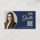 Insurance Agent Navy Blue Gold Photo QR Code Linen Business Card