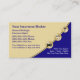 Insurance broker or agent business cards with beige background colour you can customise and blue modern design element, along with image of a home, automobile, and medical symbol representing home owners insurance, medical insurance, and auto insurance. Designed for an agent, agency, independent rep, or brokerage.