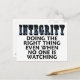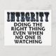 The thoughtful slogan on this merchandise encourages people to do the right thing, even when there's no pay-off. Its message says: Integrity. Doing the right thing even when no one is watching.