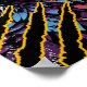 This vibrant and dynamic artwork features a close-up of an eagle's head. The background is a chaotic mix of bold colours and textures, including stripes, dots, and claw marks, creating a visually striking and energetic composition. The overall style of the artwork is bold and graphic, with a touch of abstract expressionism.