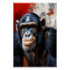 A captivating portrait of a chimpanzee! Detailed fur, expressive eyes, and a contrasting red-and-neutral background capture the strength and emotion of this primate. Art that celebrates wild beauty with a human touch, inviting connection to nature.