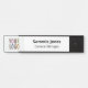 Personalise this interchangeable door name plate with your own company logo, name, job title, or other custom text. You can customise the background colour to match your corporate colours. Available in black, silver, or rose gold metal colours in two sizes – standard 2 inch x 8 inch or long 2 inch x 10 inch – and in two styles – as a door name plate or a desk name plate. No minimum order quantity and no setup fee.
