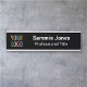 Easily personalise this interchangeable office door name plate with your own business logo, name, job title, or other custom text. You can customise the black background colour. Available in other metal colours in two sizes – standard 2 inch x 8 inch or long 2 inch x 10 inch – and in two styles – as a door name plate or a desk name plate. No minimum order quantity and no setup fee.