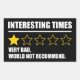 Interesting Times - Very Bad. Would Not Recommend. This sarcastic funny quote accessory is great for men & women who would give this decade a one star rating. Face difficult times with humour and sarcasm. A Chinese curse states, "May You Live In Interesting Times", and many would agree this time in history fits this description. With war, political polarisation and climate change, these are challenging times indeed!