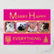 These simple 4 photo holiday postcards in bright hot pink with real gold foil printing are a fun choice for your interfaith family. A single Hanukkah menorah on the left and a stylized modern Christmas tree on the right are paired with simple font to keep the design uncluttered and keep the focus on your family's pictures. These interfaith holiday real foil postcards reverse to a white back with a medium pink border and the option to add an additional message as well as your return address. Holiday postcards for your blended Christmas and Hanukkah family and friends for a Merry Happy Everything.
