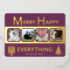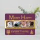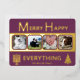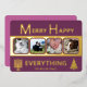 These simple 4 photo greeting cards in rich plum purple with real gold foil printing are a cute choice for your interfaith family. A Hanukkah menorah on the left and a stylized Christmas tree on the right paired with simple modern fonts keep the MERRY HAPPY EVERYTHING design uncluttered and showcases your family's pictures. These interfaith holiday flat cards reverse to a medium orchid purple with the option to add an additional message for your blended Christmas and Hanukkah celebrations. The real gold foil printing adds a bit of elegance as you embrace the faiths.