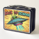 This is a standard metal lunchbox that appears to work just fine. We designed this box ourselves with an uploaded photo and custom text on the front and back. It looks absolutely beautiful except the front of the lunchbox is not centered like it shows in the photo. The print borders don't align with the inset flat part of the box where the preview photo online showed it perfectly centered in there. The back looks nice and centered though.